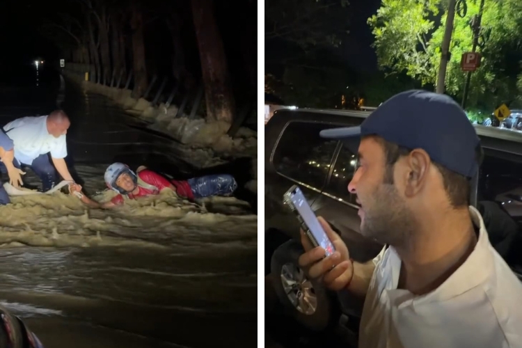 Tema del día 18 horas atrás Gobernador y sus escoltas rescataron a motociclista que estaba siendo arrastrado por la corriente Jesús Fernández, de 28 años y padre de una niña, quedó atrapado con su motocicleta ante la fuerza del agua.