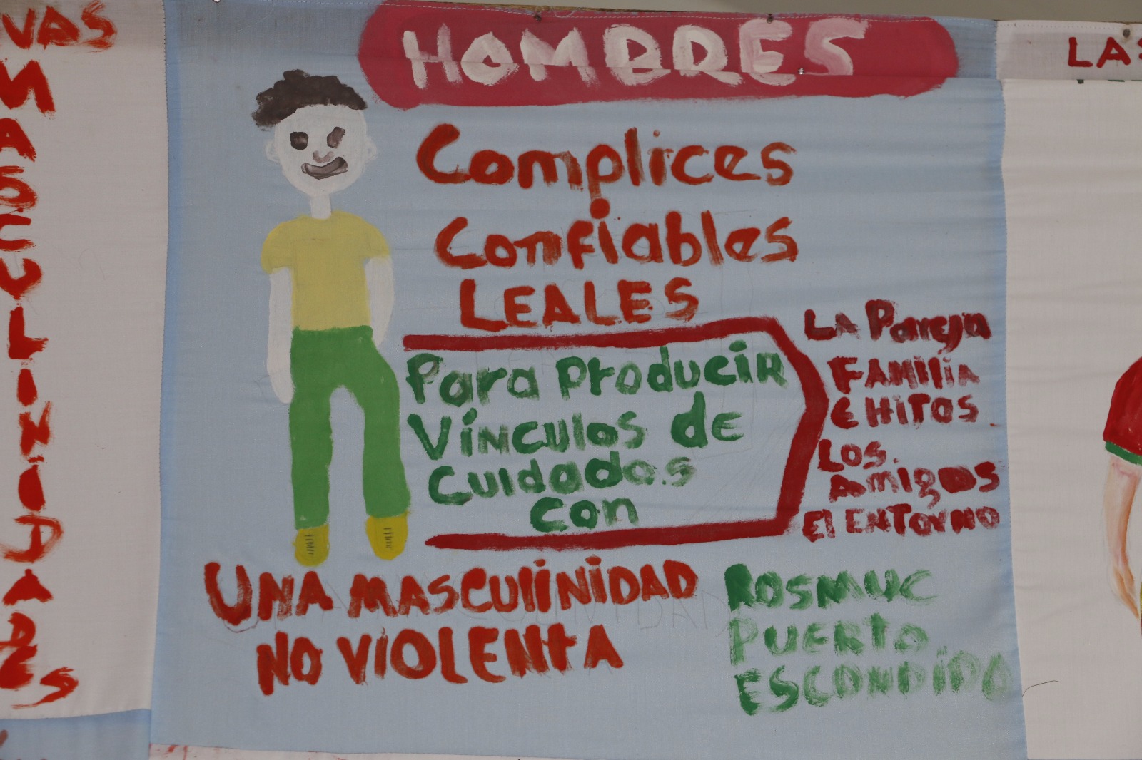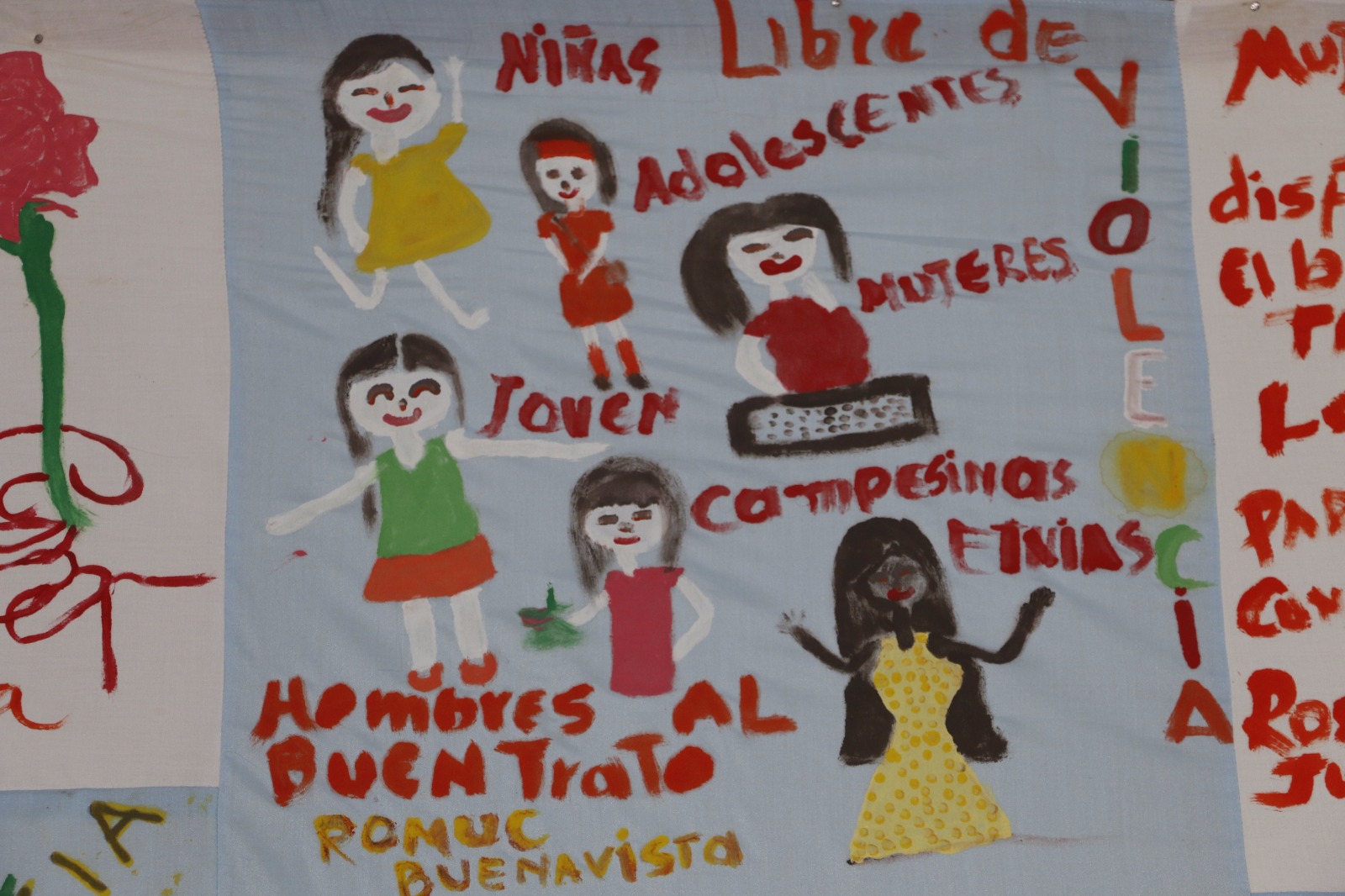 En coordinación con el PNUD, durante todo el mes de noviembre, llevaron a cabo Talleres de Sensibilización en diferentes municipios, con hombres, mujeres y jóvenes, quienes expusieron su sentir con relación a dicha problemática en seis telares, en los cuales a través de la pintura, exponen su deseo por el respeto y el trato digno hacia la mujer.
