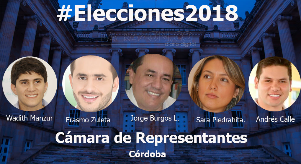 Tema del día Estos son los ganadores a la Cámara por el departamento de Córdoba 8 años atrás Erasmo Zuleta, Jorge Burgos y Sara Piedrahita Lyons por el partido de la U, Wadith Manzur, por el partido Conservador y Andrés