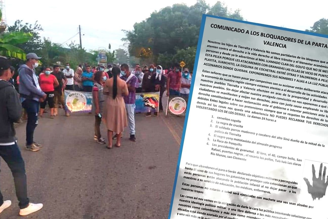 Córdoba Denuncian que con panfleto intimidan a líderes de la protesta campesina del Alto Sinú 4 años atrás El documento anónimo exige a los manifestantes abandonar el municipio en menos de 24 horas.