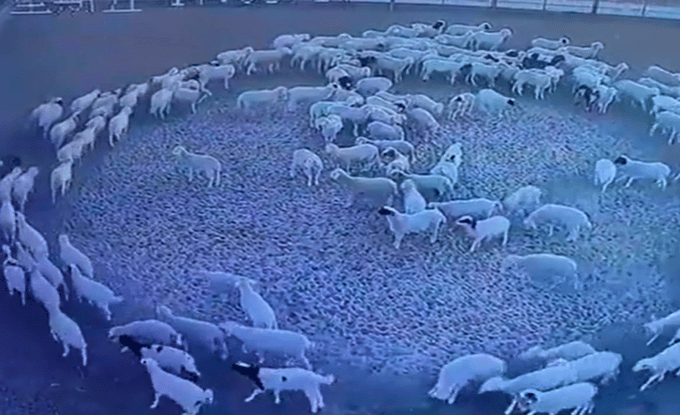 Tendencias Experto explica por qué ovejas estarían caminando circularmente por 14 días 3 años atrás El video fue captado por las cámaras de seguridad de una granja, los expertos trataron de llegar a una conclusión sobre las