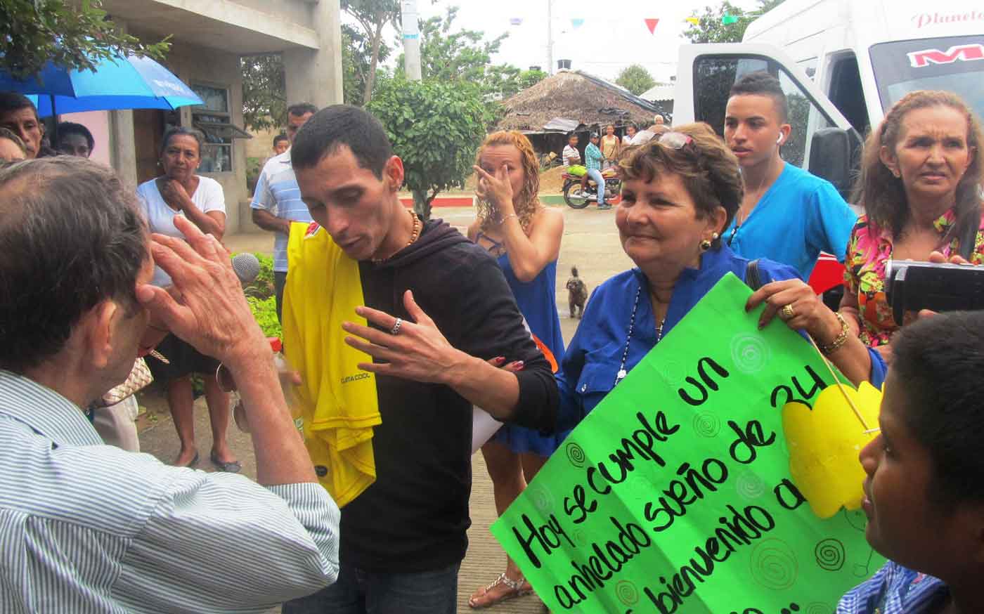 El reencuentro de Elkin Van Oooijen con su madre bilógica, hermano y familiares, se convirtió en todo un acontecimiento que paralizó las actividades en el populoso sector del portal de Jesús, en Sahagún, lugar donde Doña Edith, está alojada por estos días, porque ella al igual que su hijo, tiene que regresar al sitio de residencia actual, el barrio Cabañas en Arauca, donde vive desde hace más de veinte años y desde donde lideró la búsqueda de su hijo.