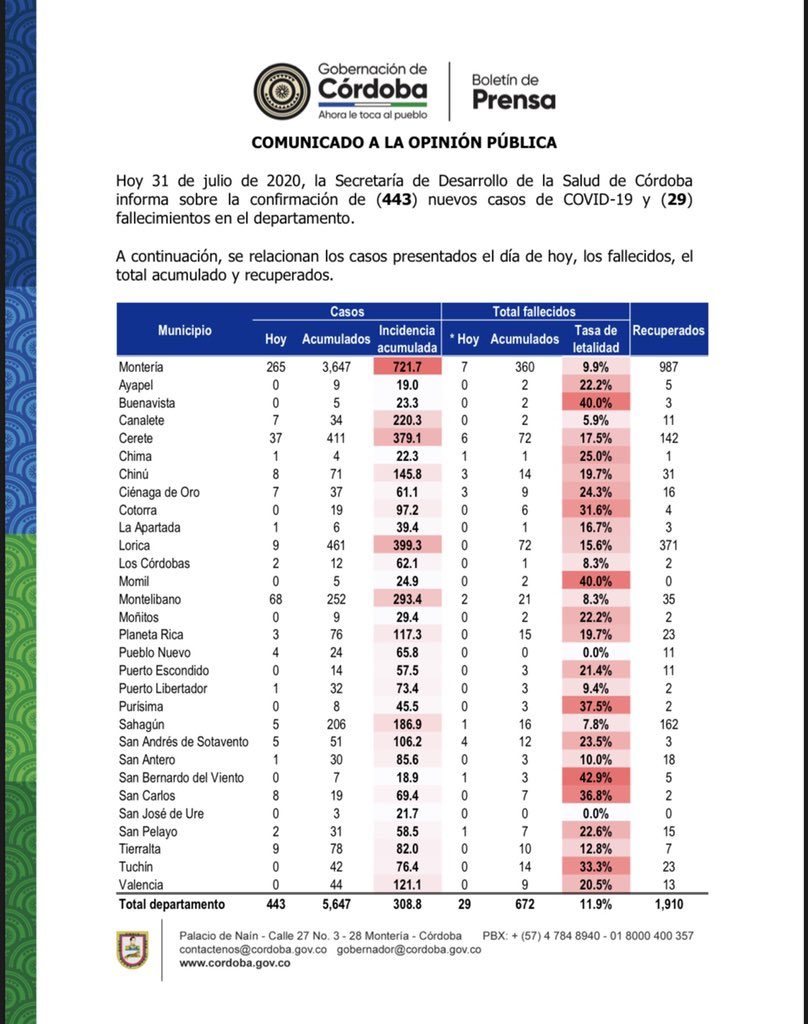A continuación, el consolidado en todo el departamento:
