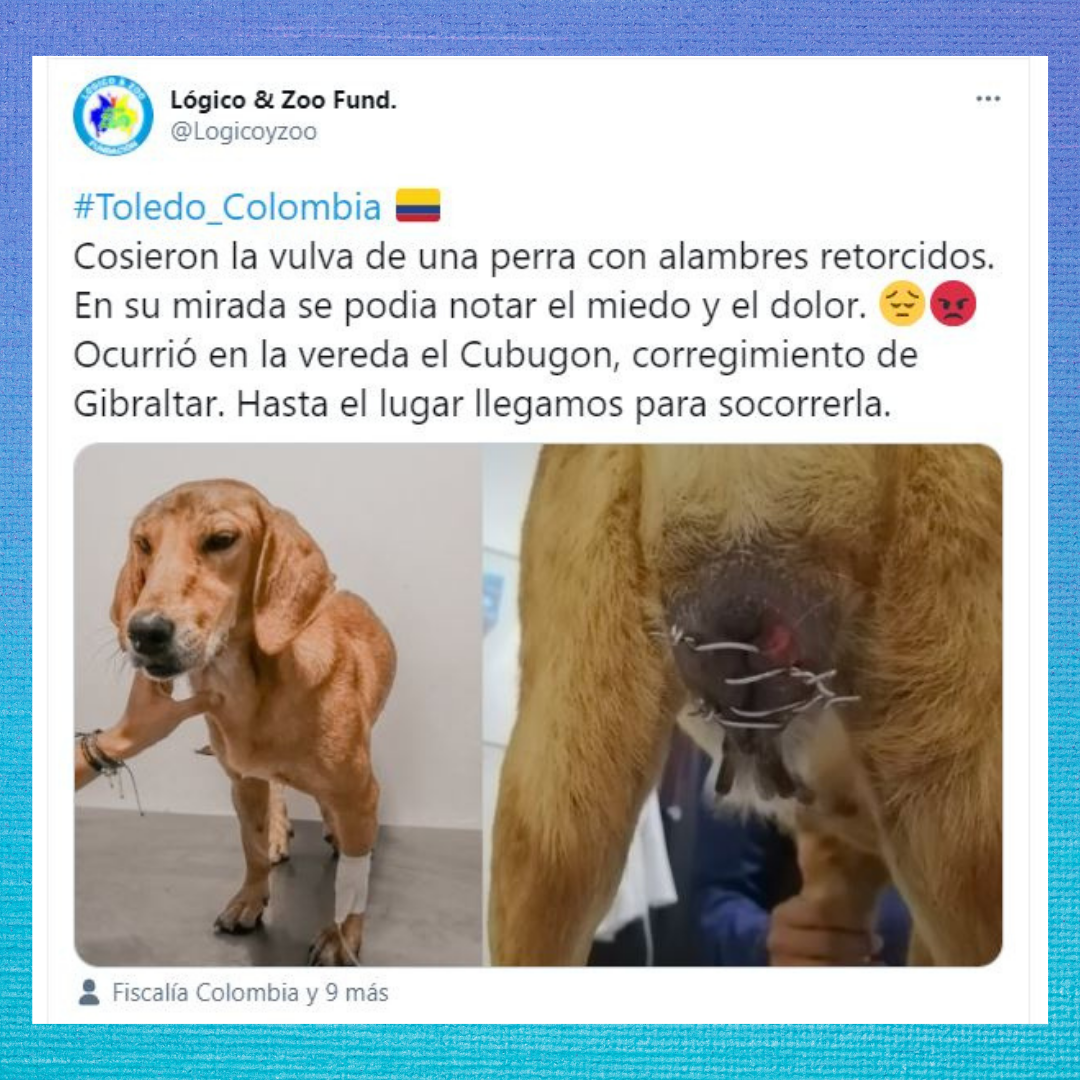 #Noticias| Un aberrante caso de maltrato animal se conoció a través de Twitter, según la denuncia hecha por la fundación ‘Lógico & Zoo’, a una perra llamada ‘Maya’, le cosieron los genitales con un alambre como método para evitar que quedara preñada.