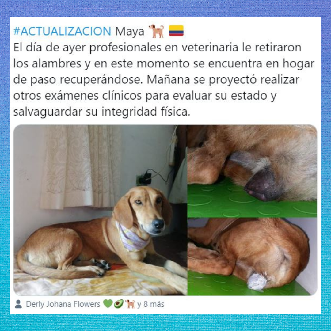 Se conoció que ‘Maya’ logró superar las heridas satisfactoriamente y que se está recuperando en un hogar de paso, a esperas de que alguna familia desee adoptarla.