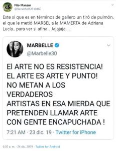 La cantante Marbelle y ex jurado del Factor X, también le pidió a traves de un trino que no meta a los artistas en esta lucha.