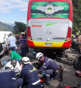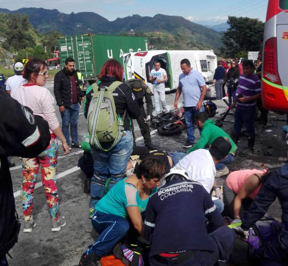Además de los autos, unas siete motos y otras dos busetas de servicio público también se vieron involucradas en el accidente que afortunadamente no cobró la vida ninguno de los pasajeros.