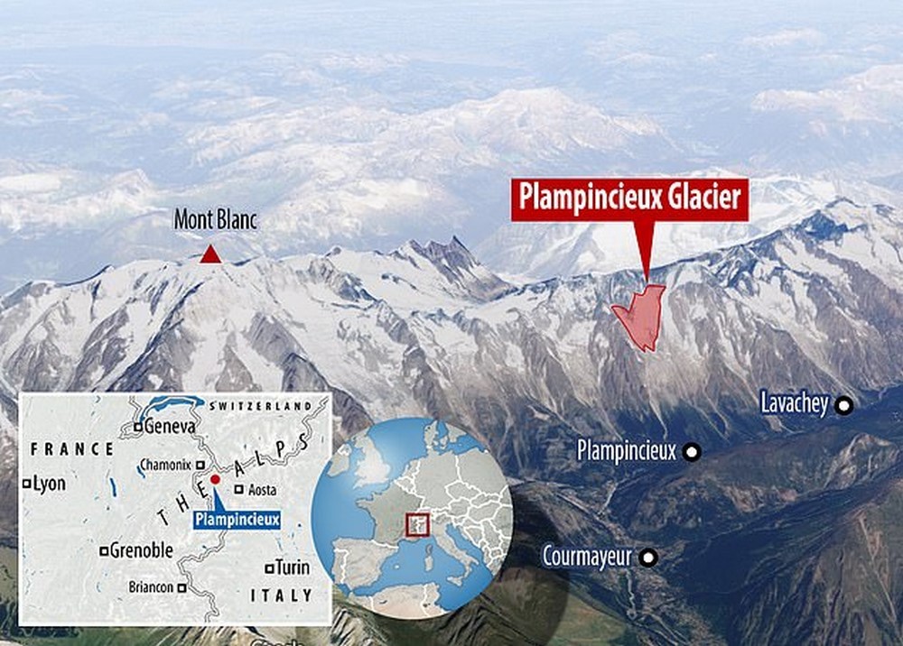 #Noticias| Una enorme masa de hielo, cuyo volumen se estima en 500.000 metros cúbicos, amenaza con desprenderse del glaciar Planpincieux, ubicado en el macizo del Mont Blanc, Italia. Las autoridades evacuaron a unas 70 personas entre residentes y turistas aledaños a la zona, así como también fueron cerradas algunas carreteras.