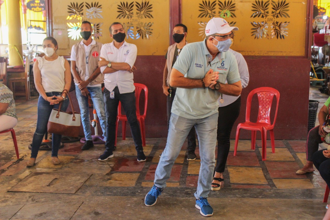 Previo a la desinfección, el secretario de Gobierno de Lorica, Bladimir Negrete Arrázola; y Rosa Negrete, del área de sanidad, socializaron con comerciantes y artesanos la necesidad de adecuar los locales con protocolos de bioseguridad, para poder autorizarles la reapertura en la nueva fase de reactivación comercial por sectores.