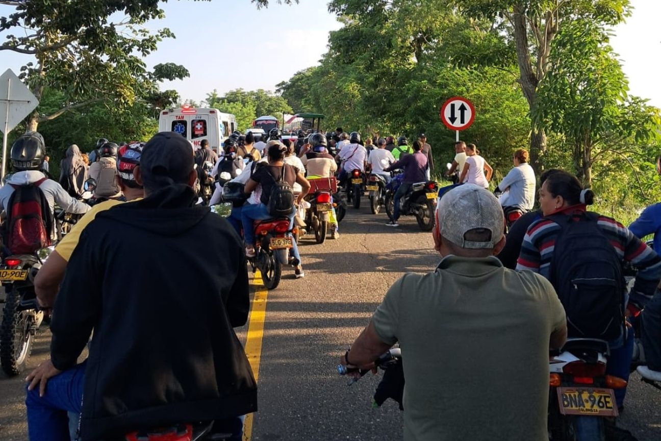 En el punto donde inicia la doble vía hacia Lorica, los usuarios del transporte público deben hacer trasbordo y continuar a pie para completar sus trayectos, mientras que quienes se dirigen a Coveñas, Tolú y otros municipios deben tomar transportes alternativos para sortear el bloqueo.