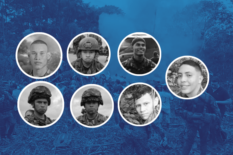 Las víctimas son los soldados profesionales Arley Camilo Tordecilla Warnes, natural de Montería; Daniel Esteban Arias Pérez y Santiago Andrés Arias Pérez, ambos oriundos de Puerto Libertador; Cristian Camilo Baza Tordecilla, de la vereda Charruba en Tierralta; Camilo Andrés Argel Villadiego, del corregimiento Aguavivas en Montelíbano; Ederxander Morales Torres, también de Montelíbano, y Luis Eduardo González Hernández, de San Bernardo del Viento.