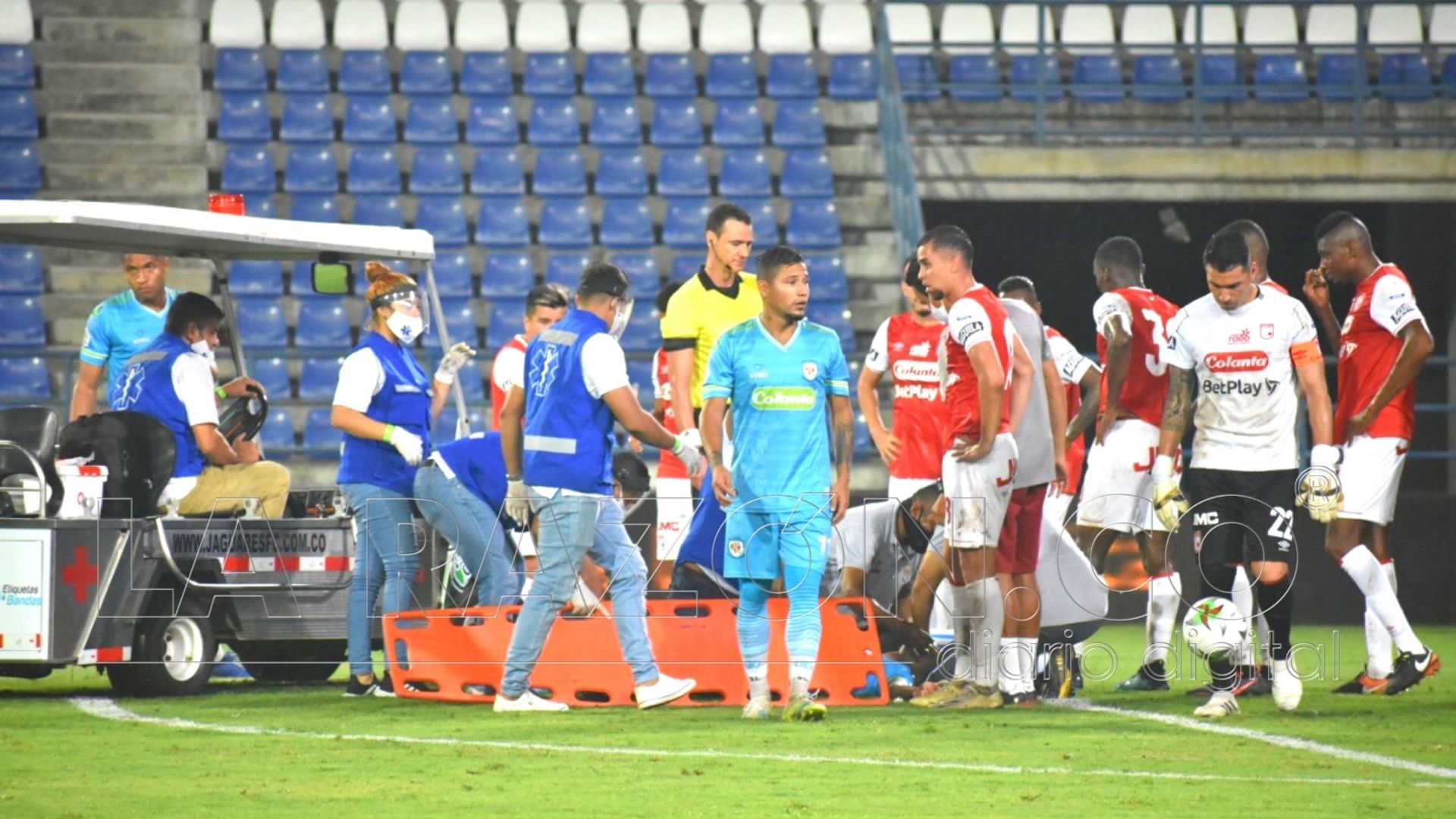 Al deportista se le practicó una tomografía de cráneo simple, la cual descartó lesiones intracerebrales, actualmente se encuentra bajo observación neurológica y tratamiento sintomático y en las próximas horas será dado de alta de acuerdo a su evolución médica.