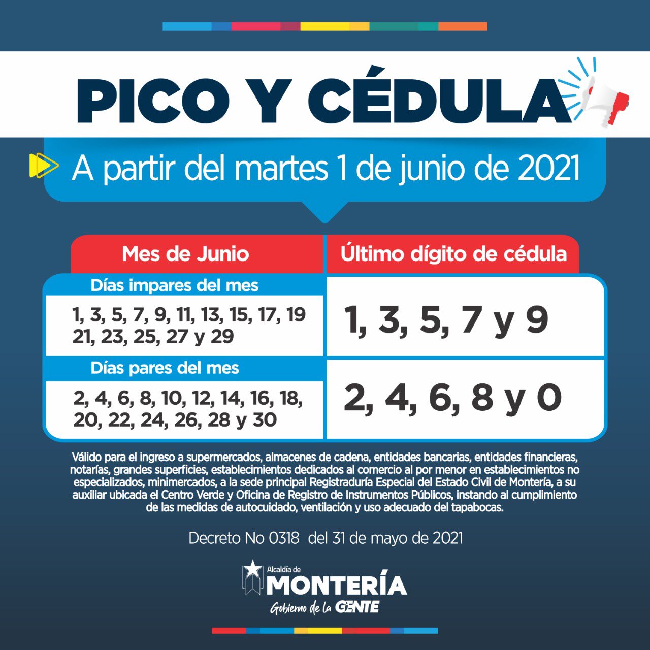 Redacción. A partir de este martes primero de junio los monterianos deberán cumplir con un nuevo pico y cédula para el ingreso a los diferentes establecimientos.