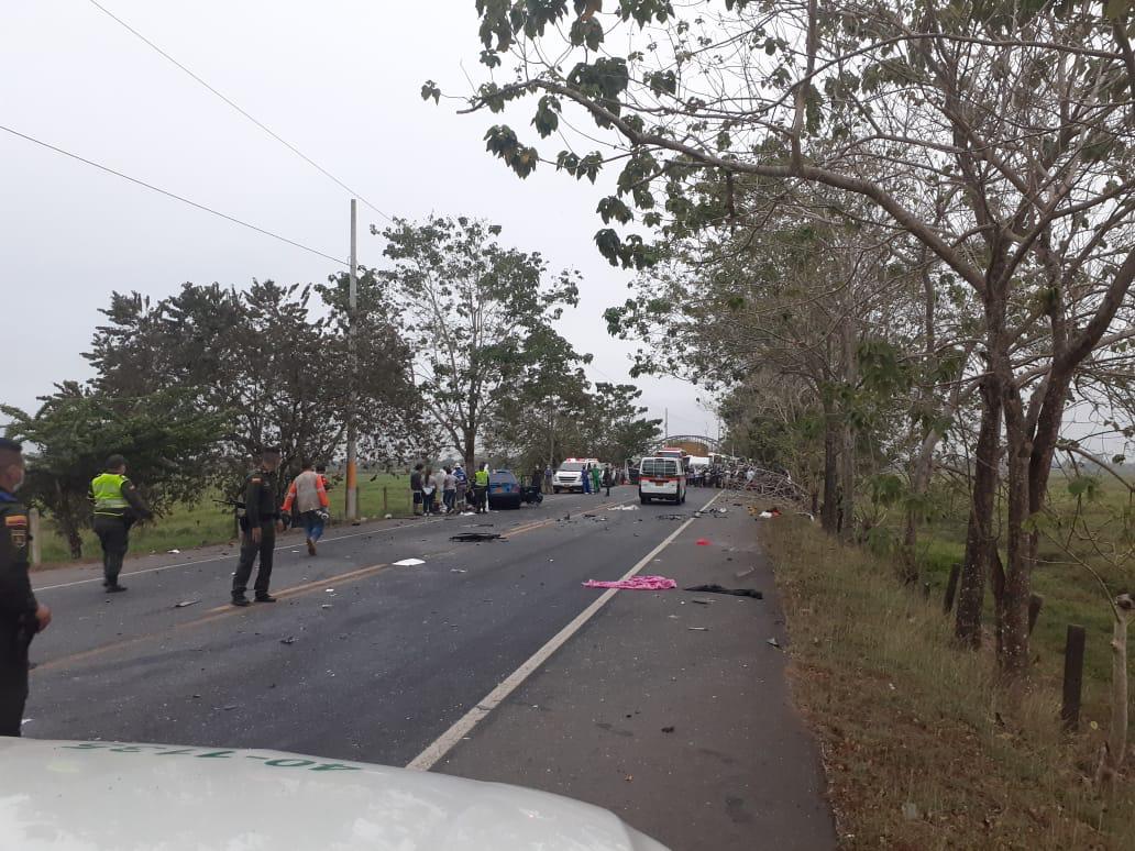 “El otro vehículo involucrado es un campero marca Toyota línea Fortuner de color blanco, con placas IAM 777, ahí se movilizaban dos personas quienes inicialmente, fueron remitidas al Camu de La Apartada, pero dadas las necesidades médicas que tenían, fueron trasladadas a la ciudad de Montería”, dijo.