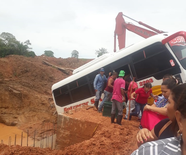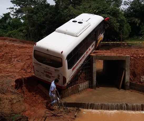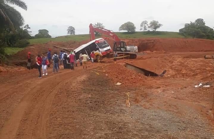 Sin embargo, el mal estado del terreno habría ocasionado que el conductor de la buseta perdiera el control y cayera cerca del box coulvert que se construye en el paso provisional.