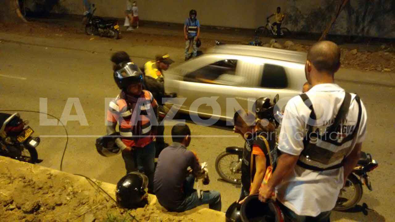 Una ambulancia trasladó al hombre herido a un centro médico para descartar fracturas; afortunadamente la mujer que iba de parrillera, solo tuvo golpes menores.