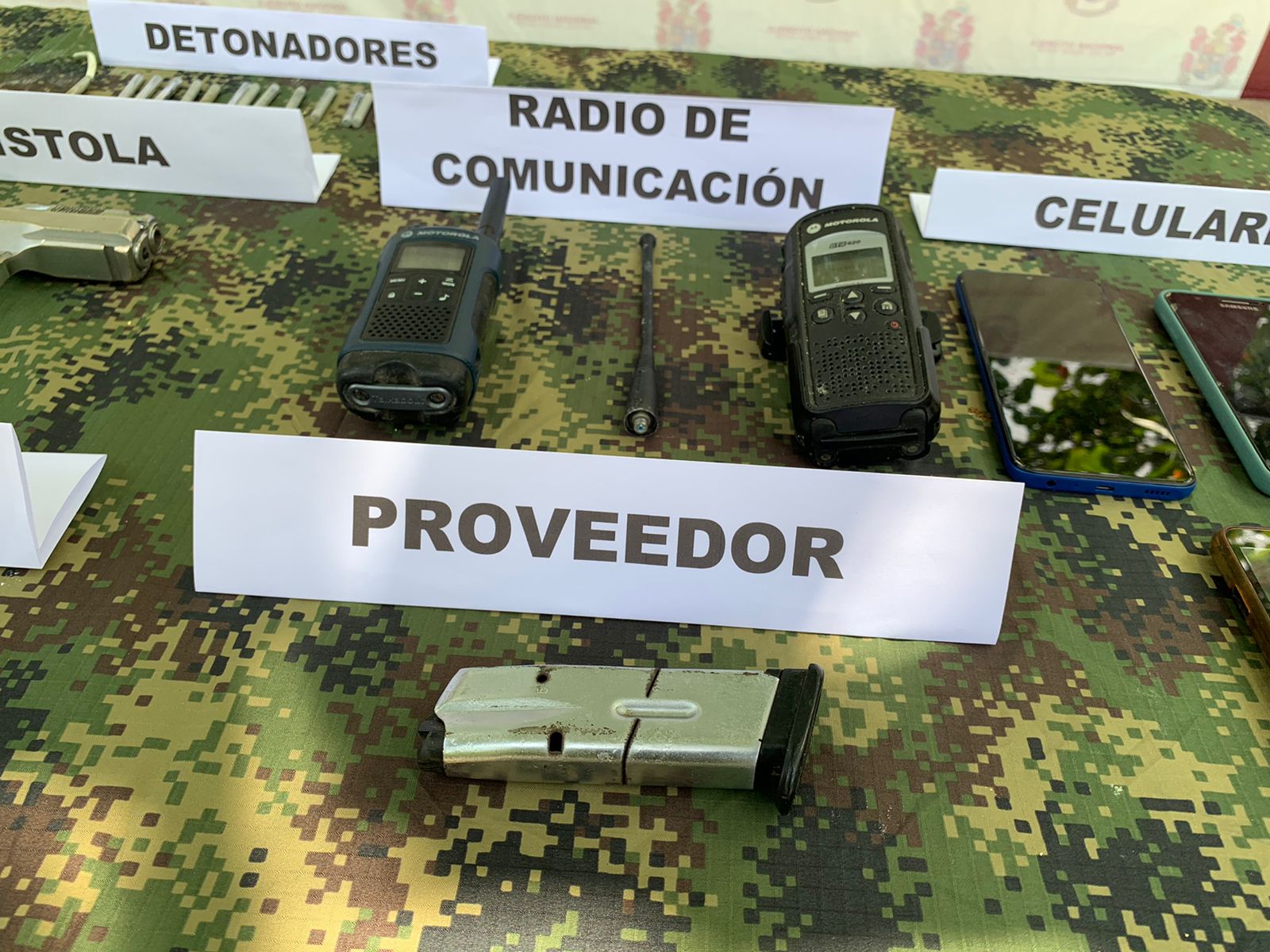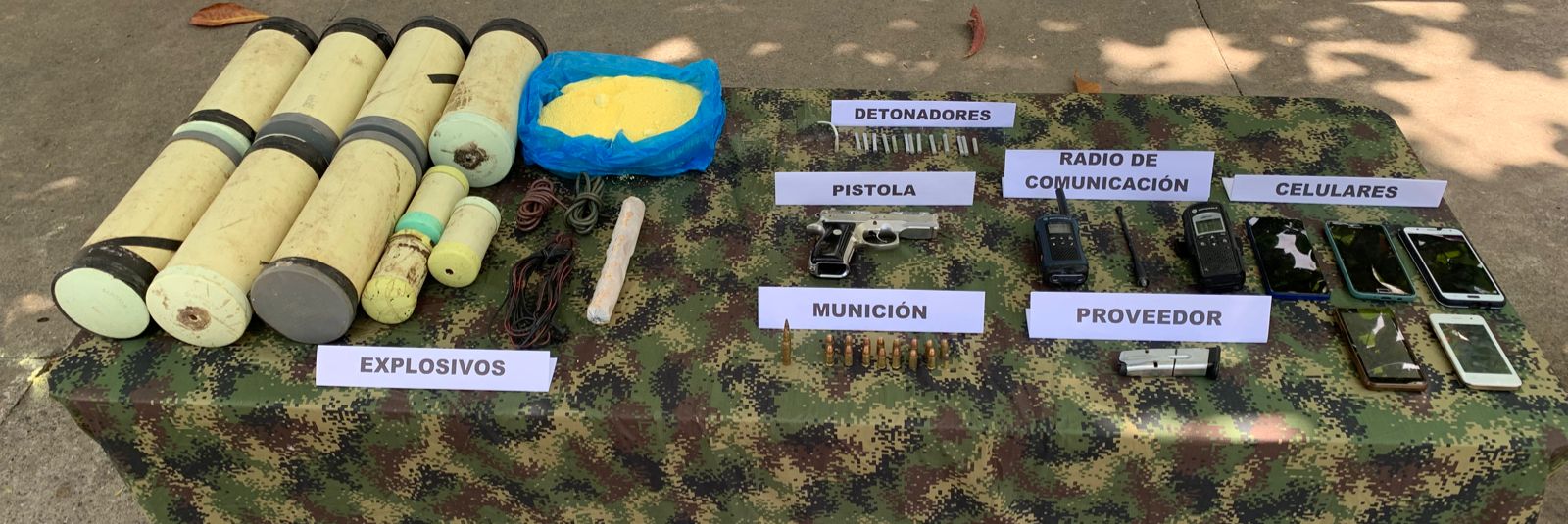 Durante la operación las autoridades lograron incautar un arma de fuego tipo pistola, municiones, 14 detonadores ineléctricos, tres metros de cordón detonante entre otros elementos.
