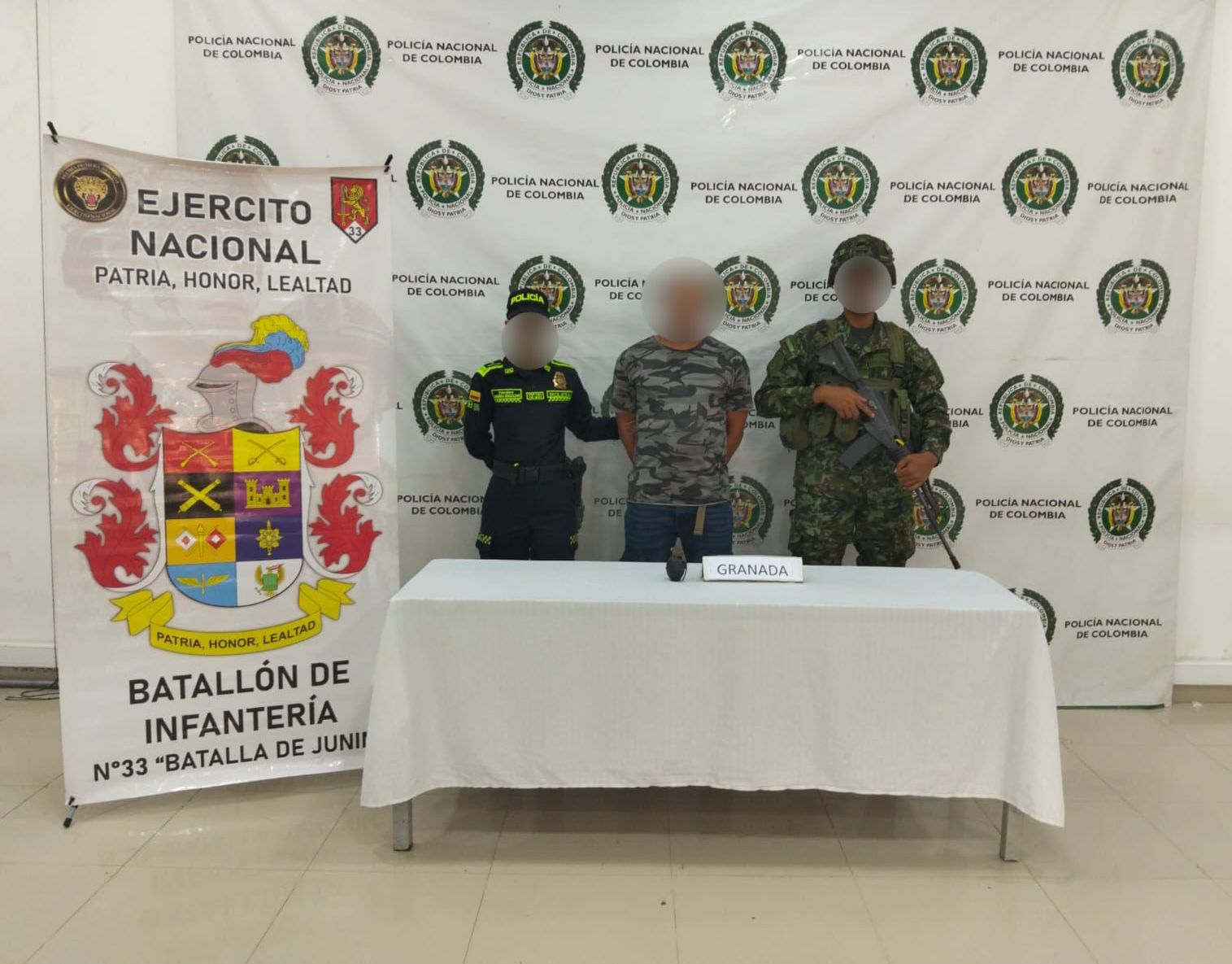 Tropas del Batallón de Infantería N.° 33 Batalla de Junín y la Policía de Córdoba capturaron en flagrancia a un presunto integrante del grupo armado organizado Clan del Golfo, conocido como alias “el Mono”, quien portaba una granada de fragmentación en el casco urbano de San Marcos, departamento Sucre.