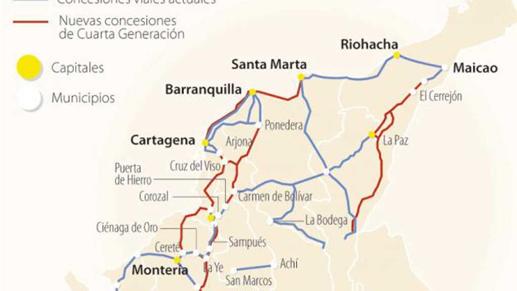 Nación. Cartagena y Barranquilla, Puerta de Hierro y Cruz del Viso son las dos vías de cuarta generación de concesiones que beneficiarán directamente a la región Caribe. Juntas tienen una inversión de $1,4 billones, para construir y rehabilitar más de 580,7 kilómetros de carreteras.