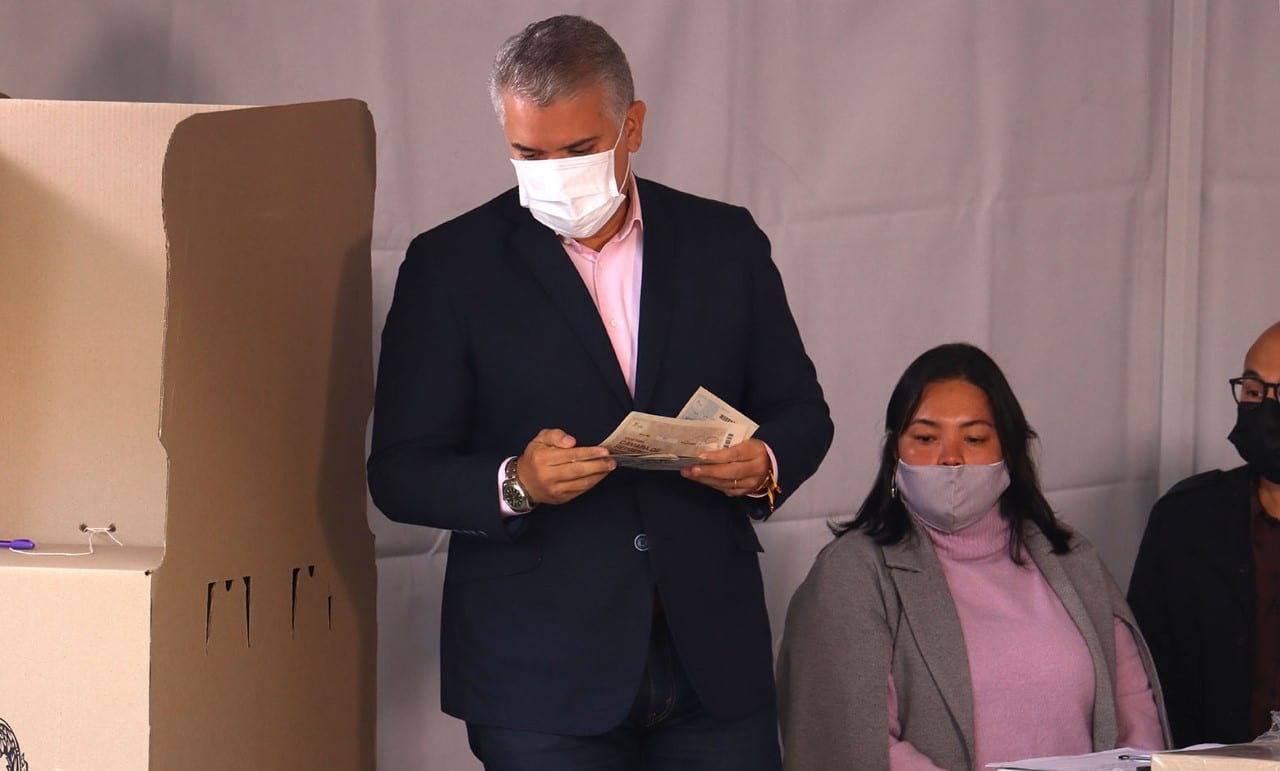 Elecciones 2022 Iván Duque ejerció su derecho al voto y habría votado por la coalición ‘Equipo por Colombia’ 4 años atrás Un detalle que llamó la atención de los colombianos, fue que pidió el tarjetón de las consultas interpartidistas, debido a que su