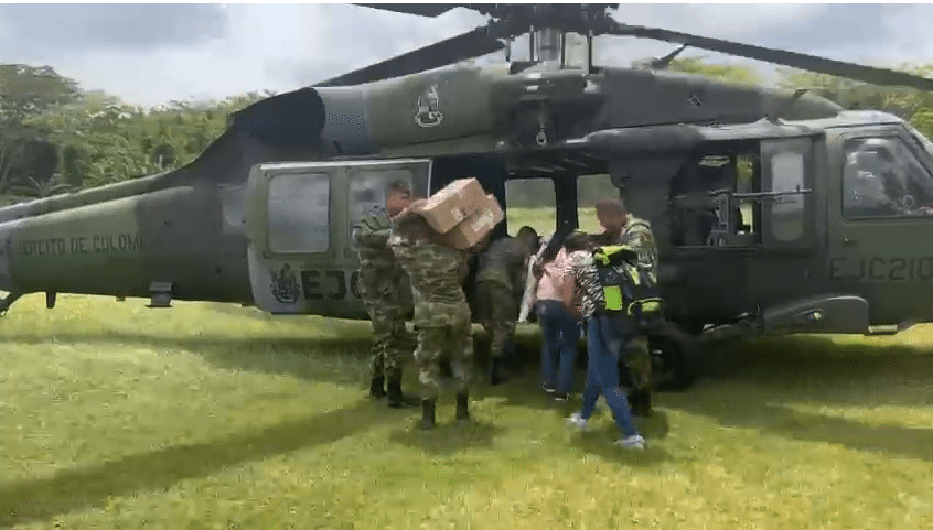 Elecciones 2022 En helicóptero del Ejército se ingresó el material electoral al corregimiento Loma Verde 4 años atrás Ejercito apoyó dada las dificultades de acceso para llevar los tarjetones y movilizar a los delegados a esta zona de difícil acceso.