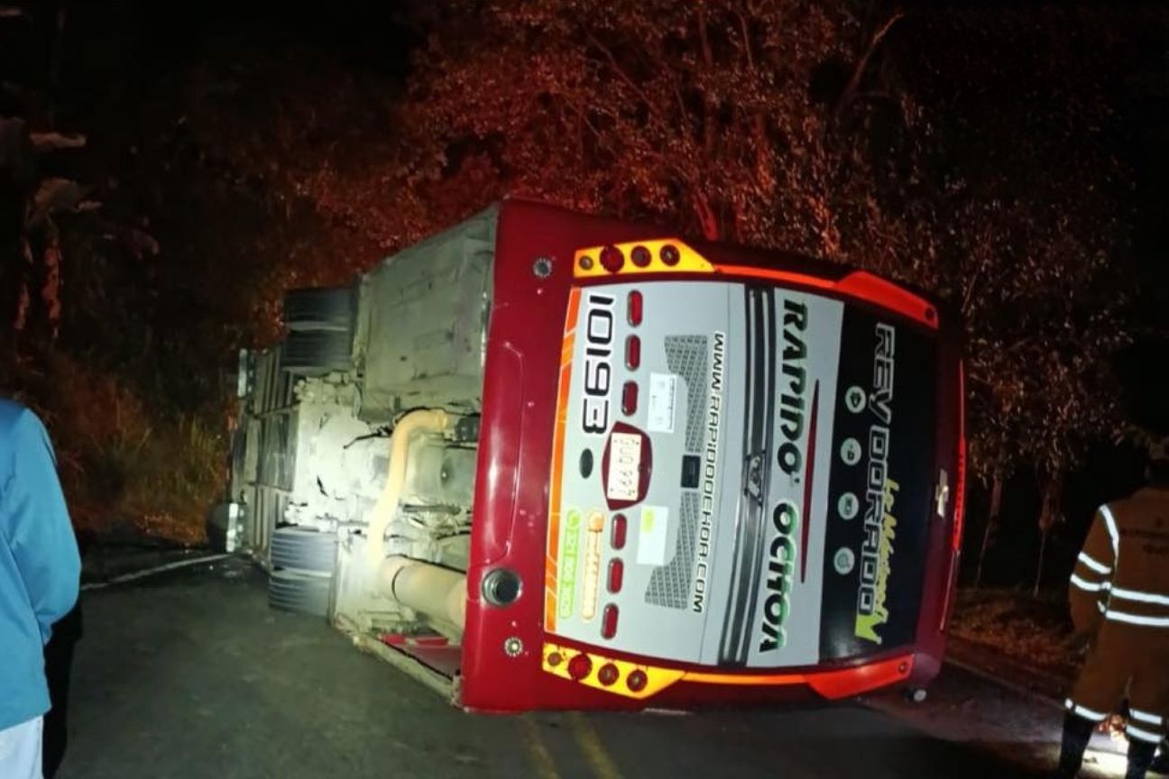 Las autoridades recomiendan precaución en la zona mientras continúan las labores de investigación para determinar qué originó el volcamiento del vehículo de servicio intermunicipal.