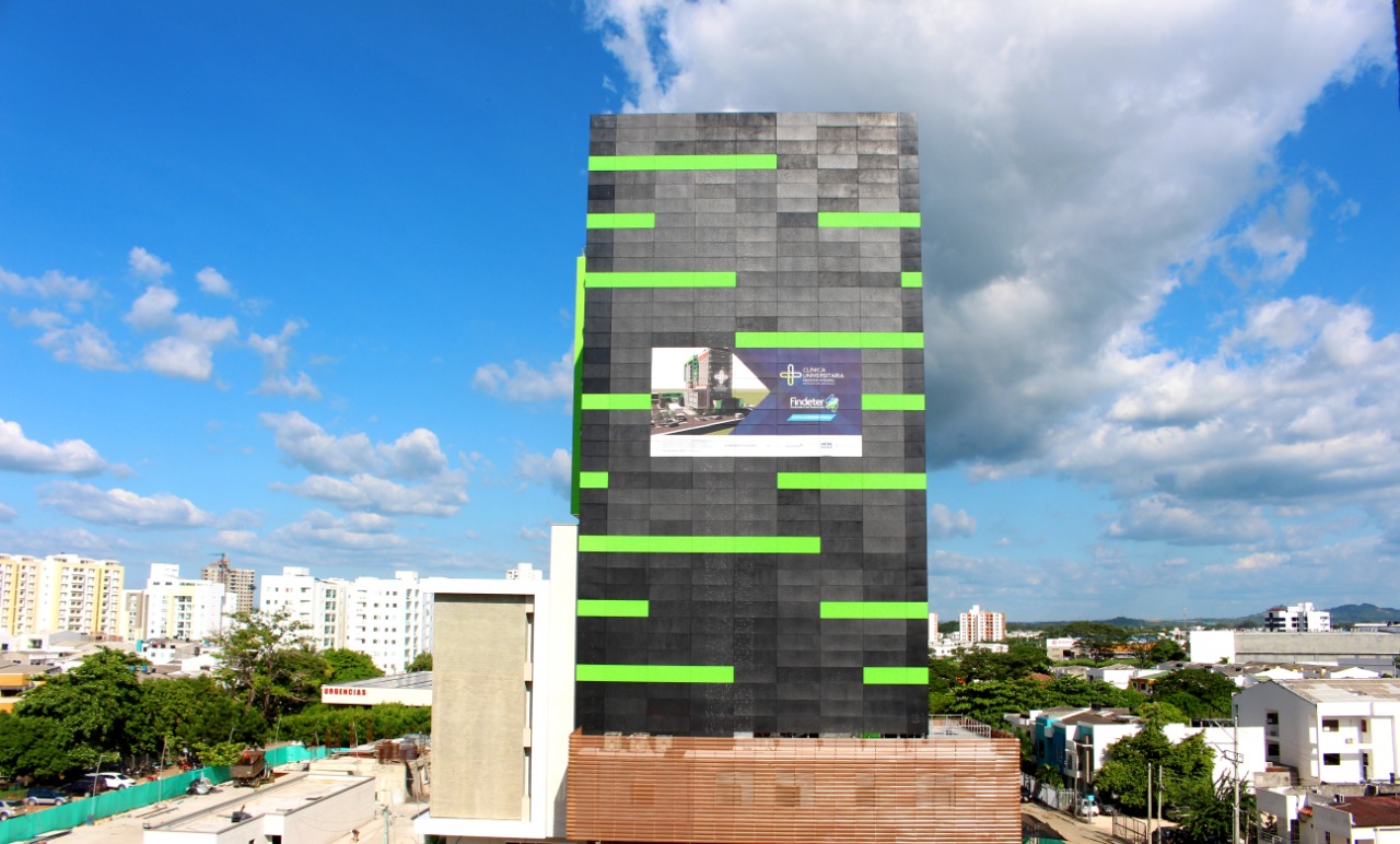 La construcción de la Clínica Universitaria fue financiada por Findeter y el Grupo Bancolombia, operada por Medicina Integral, e incorpora tecnología bioclimática, optimizando la luz y el agua que en ella se va a utilizar.