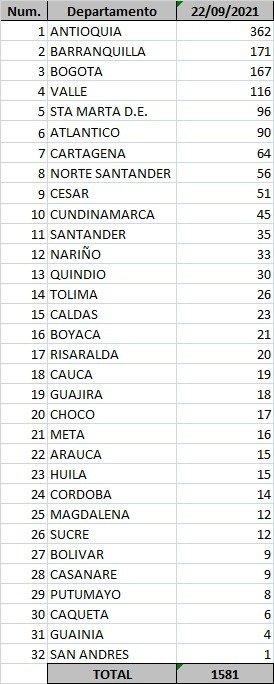 Redacción. Para este 22 de septiembre el Ministerio de Salud reportó 1.581 nuevos casos de COVID-19 en todo el territorio nacional.
