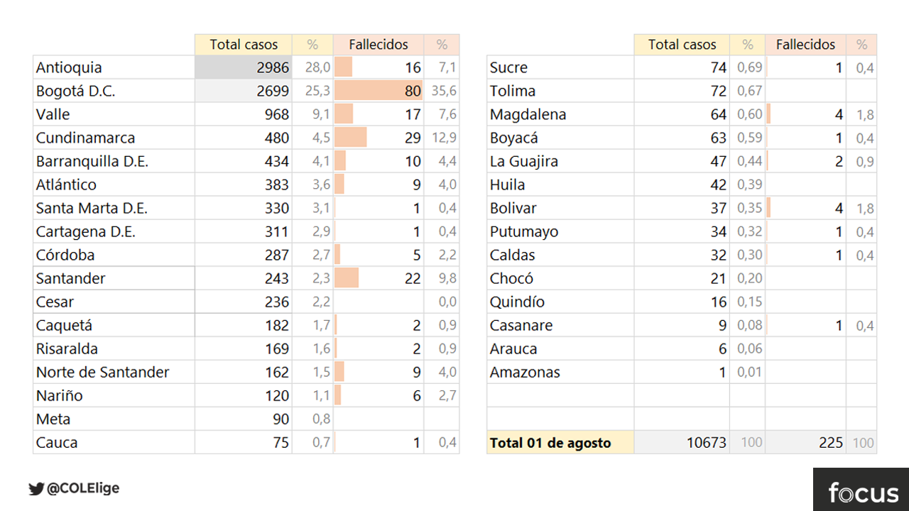 Listado de contagios y muertes por regiones Cortesía: @COLElige