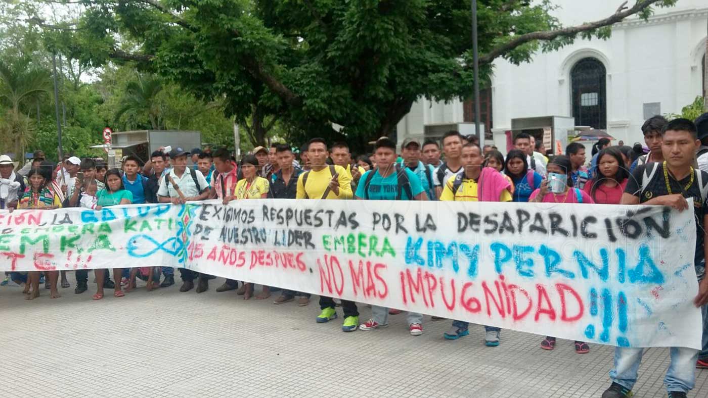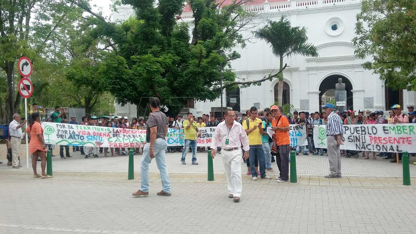 Así mismo cerca de 100 indígenas emberakatíos, llegaron desde Tierralta a Montería, y hacen presencia pacífica a las afueras de la Gobernación de Córdoba, exigiendo al gobierno local y nacional, que se les respete su territorio, les suplan sus necesidades en las áreas de educación (Plan etnoeducativo) y saneamiento básico, así como reclaman que no quede en la impunidad la desaparición de dos de sus líderes indígenas, entre estos Kimy Pernía Domicó, desde hace 15 años.