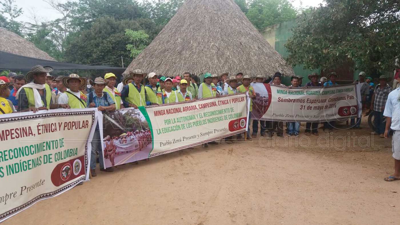 Cerca de 600 indígenas Zenúes se concentran a esta hora en el corregimiento “Tierragrata” de Chinú, en apoyo a la Minga Nacional en rechazo a las políticas agrarias del Gobierno Nacional, y en reclamo de mejores condiciones en salud, educación y respeto a los derechos humanos de estas comunidades.