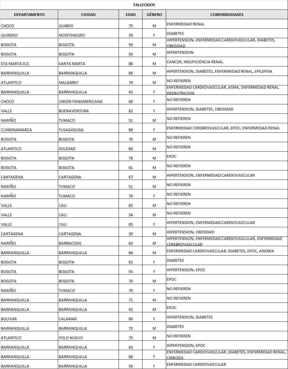 De acuerdo con la autoridad sanitaria, los fallecidos son: