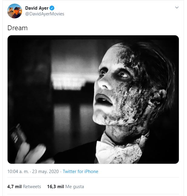 ‘Por supuesto que existe. Y está casi completo, excepto por algunos efectos visuales’, asegura el cineasta en respuesta a un fan. Hay que mencionar que debido a las dificultades con Warner se tuvieron que omitir varias horas del filme que incluyen al Joker según el director , por lo que hizo que el personaje de Leto no se entendiese en la cinta. Para constar lo dicho, Ayer compartió una imagen inédita del payaso Príncipe del crimen en su Twitter.