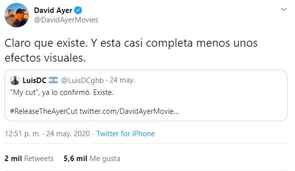 El director de cine, David Ayer, respondió a un seguidor que le pregunto sobre el ‘Ayer’s Cuts’ y este reveló a través de su cuenta oficial de Twitter que su montaje está casi listo e incluye muchas de las escenas eliminadas para que los fanáticos puedan verla.