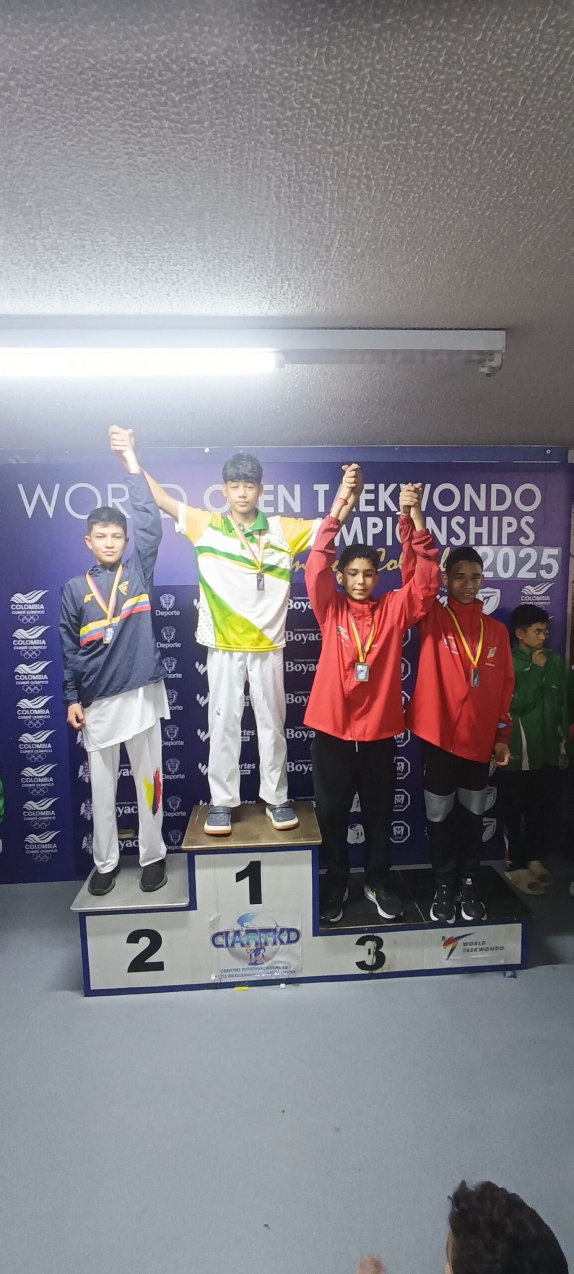 En combate individual masculino cadetes -49kg, Brayan Padilla subió a lo más alto del podio al conquistar el oro. El mismo atleta integró el trío ganador en combate por equipos TK3 masculino cadetes junto a Santiago Seña y Miguel Villalba.