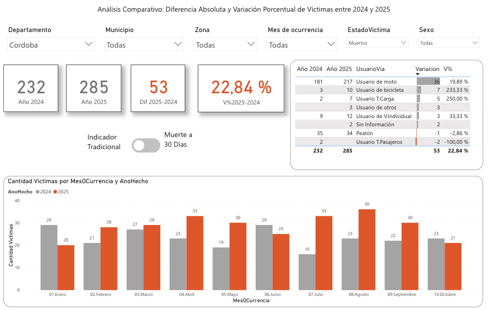 Nuevos datos de la Agencia Nacional de Seguridad Vial demuestran que Córdoba se rajó en muertes por siniestralidad vial, al contabilizar 296 personas fallecidas en accidentes de tránsito durante el presente año, cifra que representa un incremento del 27,59% frente a las 232 víctimas mortales reportadas en 2024.