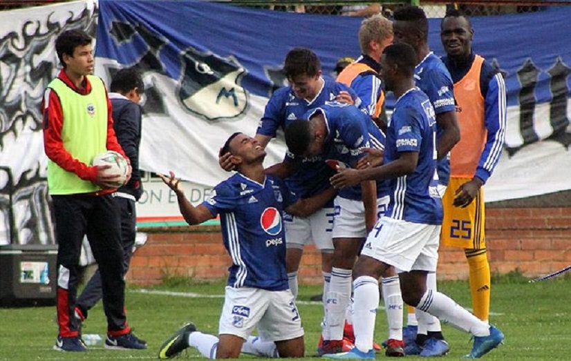 EL gol de Omar Bertel para darle el triunfo a @MillosFCoficial en cota frente a Fortaleza. #VamosMillonarios 💙