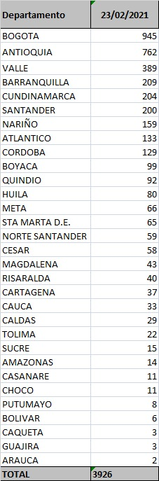 38.146 casos activoshttps://t.co/SiKTpTCQ3W pic.twitter.com/lIQx9Ytbiz— MinSaludCol (@MinSaludCol) February 23, 2021