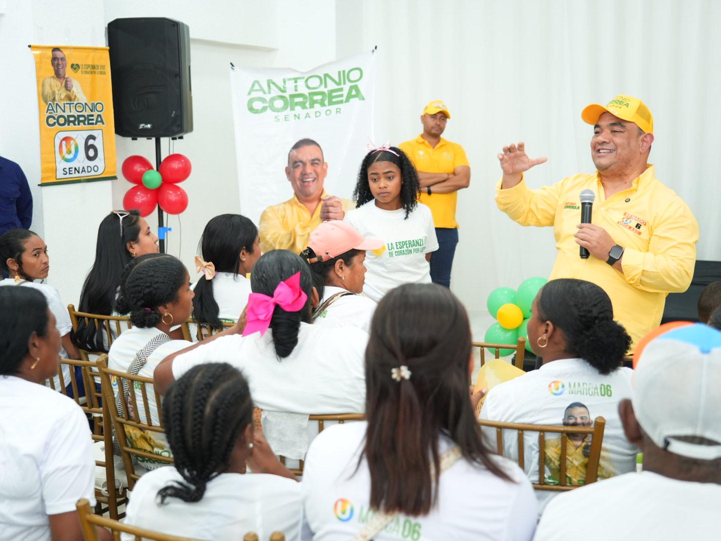 Durante su intervención, Correa expuso los ejes centrales de su gestión legislativa: el fomento del deporte y la recreación como motores de cambio social, la inversión en programas de protección familiar y el apoyo a comunidades en condición de vulnerabilidad en la región Caribe.
