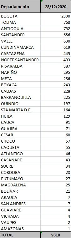 Redacción. El Ministerio de Salud y Protección Social confirmó este lunes 9.310 nuevos casos de COVID-19 en el país, con lo que la cifra llega a 1.603.807 en total.