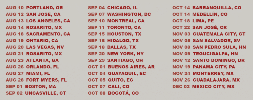 Esta gira tendrá lugar en distintas partes del mundo como Chile, Estados Unidos, Argentina, México, Honduras, Colombia y otra cantidad de países más.