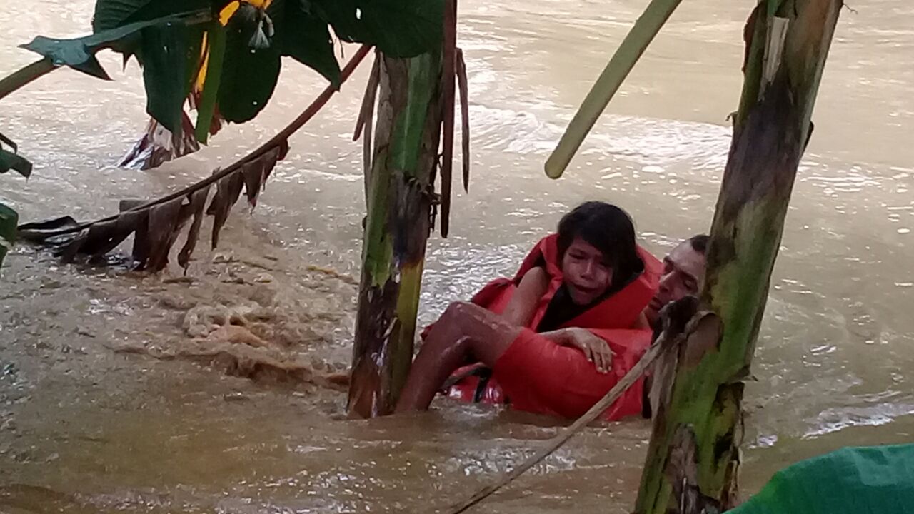 La familia fue sorprendida a tempranas horas de la mañana por esta inundación, tras el desbordamiento de la quebrada El Juí, cuya caudalosa corriente inundó amplios sectores en la zona rural.