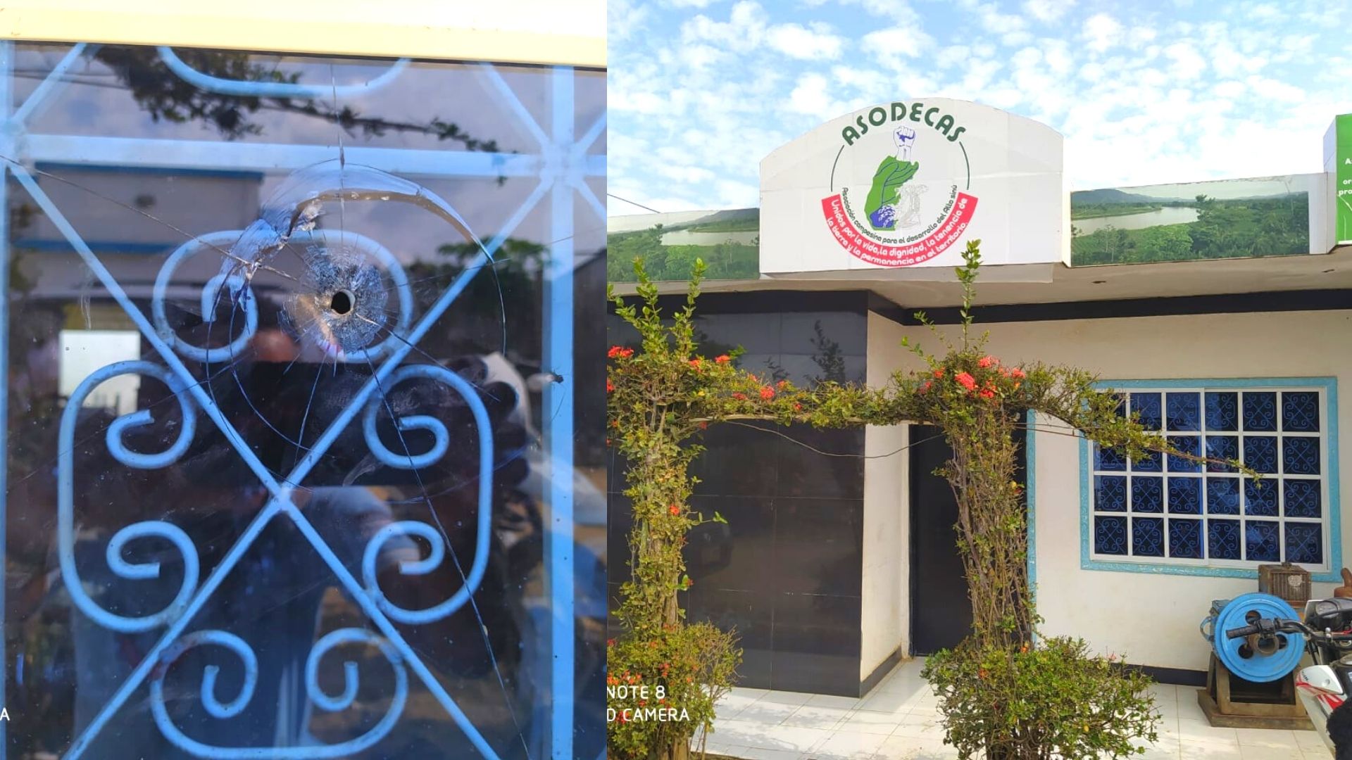 el líder campesino llegó a su residencia, ubicada a un costado de la sede de ASODECAS y encontró las ventanas de su casa perforadas con impactos de arma de fuego.