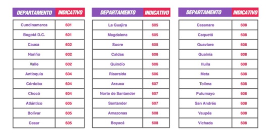 Estos son los indicativos para cada departamento: