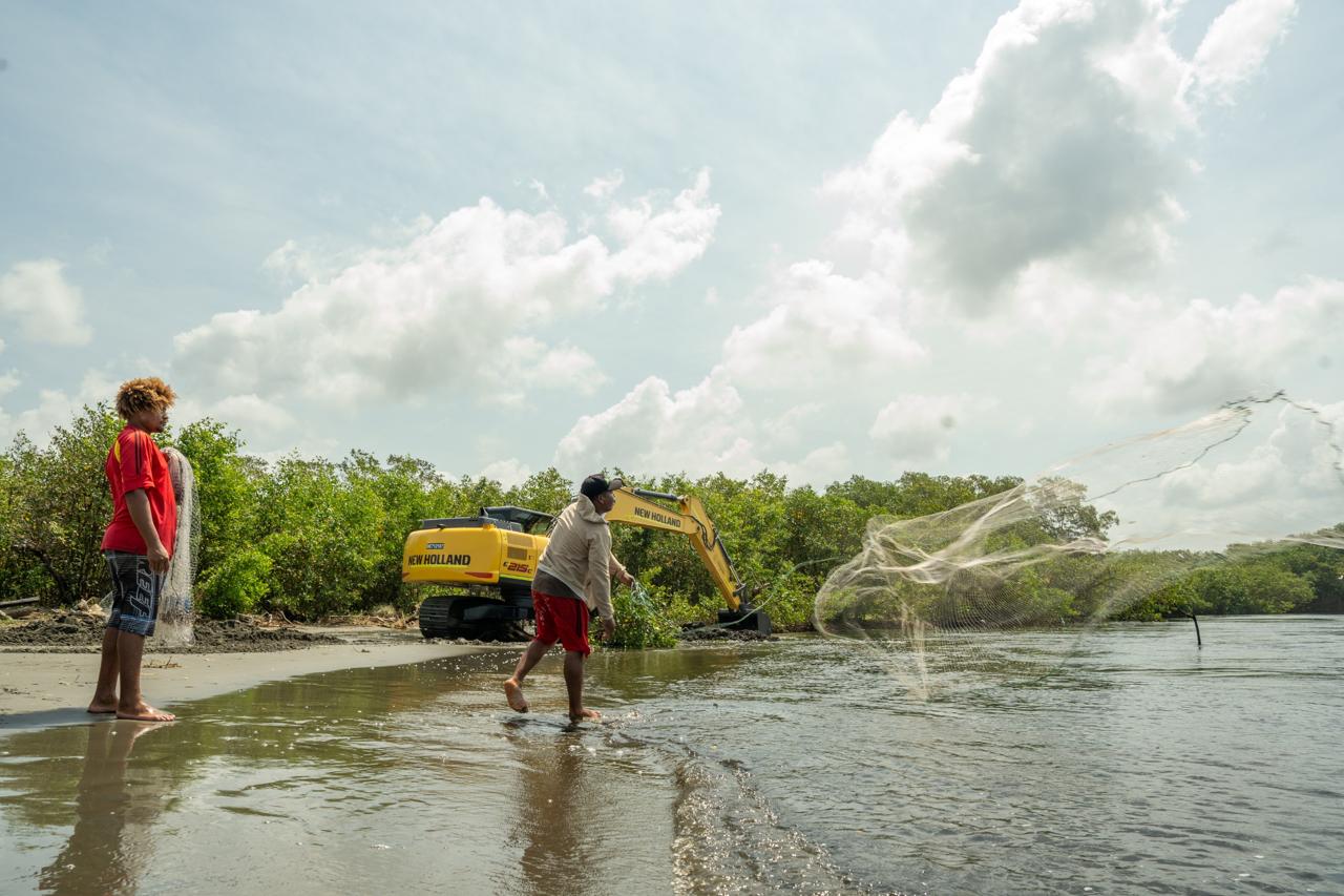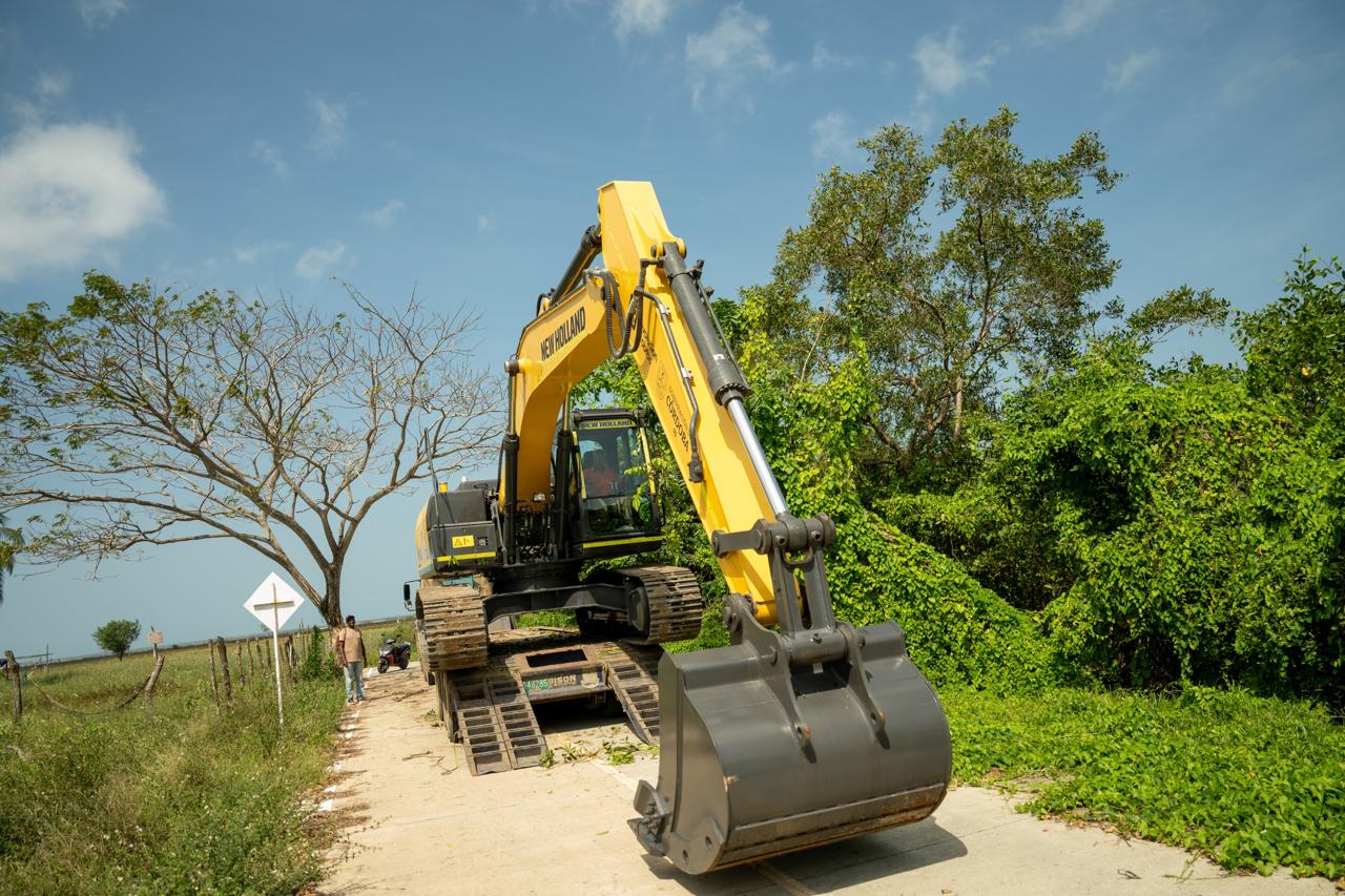 Desde tempranas horas, operarios trabajan en la desembocadura del Caño La Balsa, donde ejecutan obras para drenar el agua que ingresa al municipio debido al elevado nivel del afluente. Las máquinas retroexcavadoras concentran esfuerzos en acelerar la evacuación del líquido acumulado en sectores vulnerables.