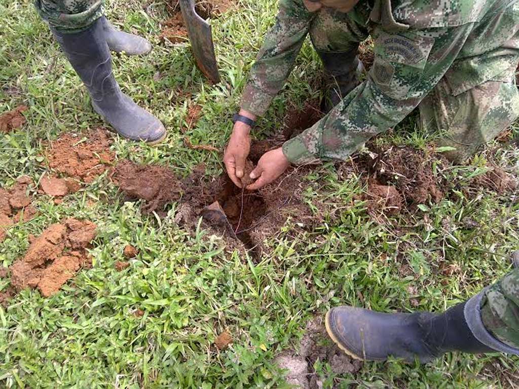 Región. Tropas de la Brigada adscrita a la Fuerza de Tarea Nudo del Paramillo, siguen en la ardua tarea de desactivar las trampas mortales que sin ningún control siembran las FARC.