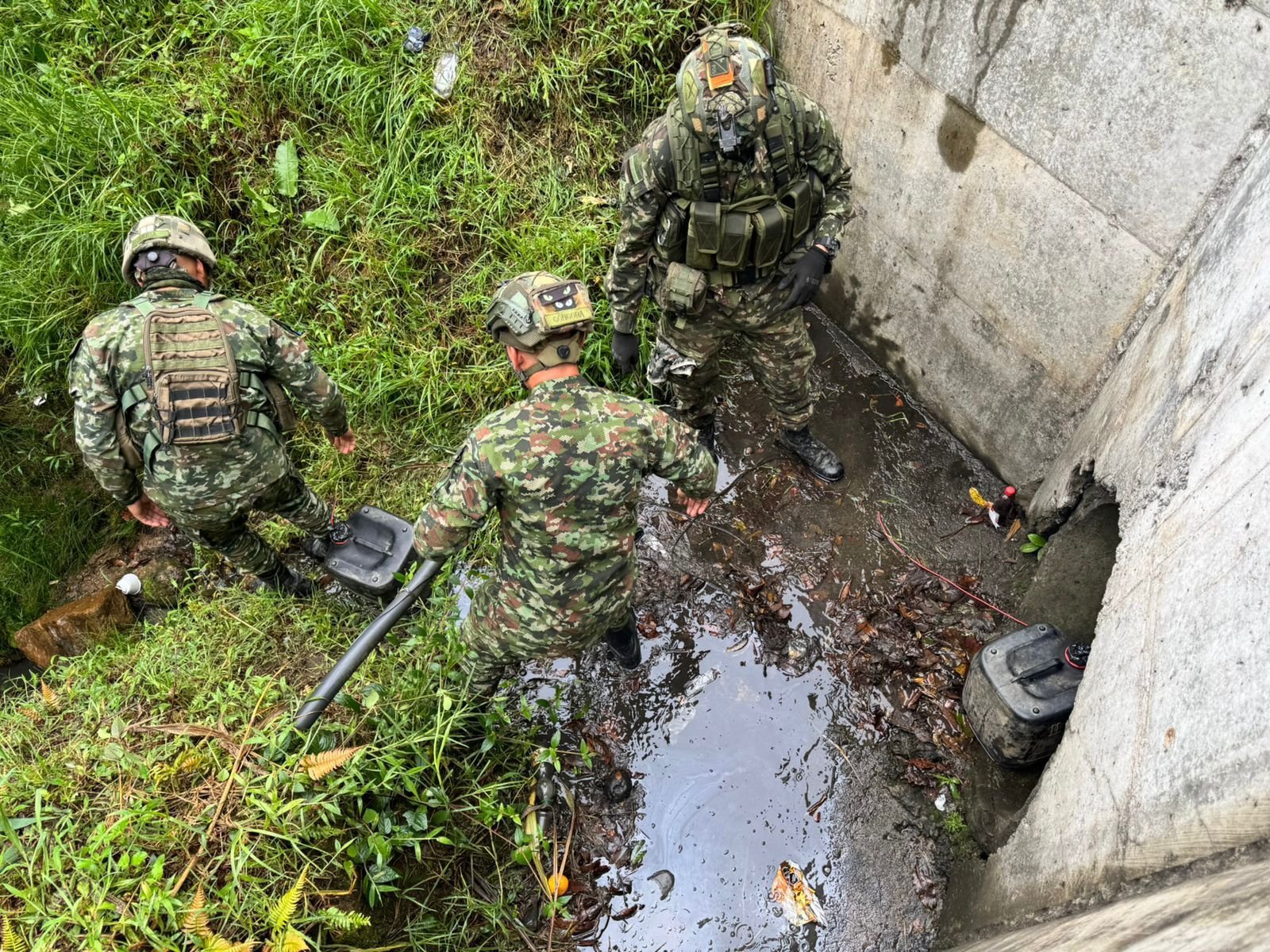 Al ​revisar ​el ​terreno, ​los ​uniformados ​encontraron ​el ​explosivo ​escondido ​en ​la ​vía. ​Expertos ​antiexplosivos ​aplicaron ​los ​protocolos ​de ​seguridad ​correspondientes ​y ​realizaron ​la ​destrucción ​controlada ​del ​artefacto ​sin ​causar ​daños.