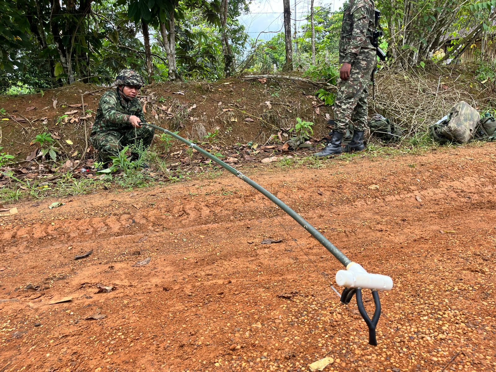 Soldados del Batallón de Selva N.° 51, orgánico de la Vigésima Segunda Brigada de Selva, hallaron un artefacto explosivo improvisado en el casco urbano de Miraflores, Guaviare, el cual habría sido instalado por integrantes de la Estructura Primera Armando Ríos.