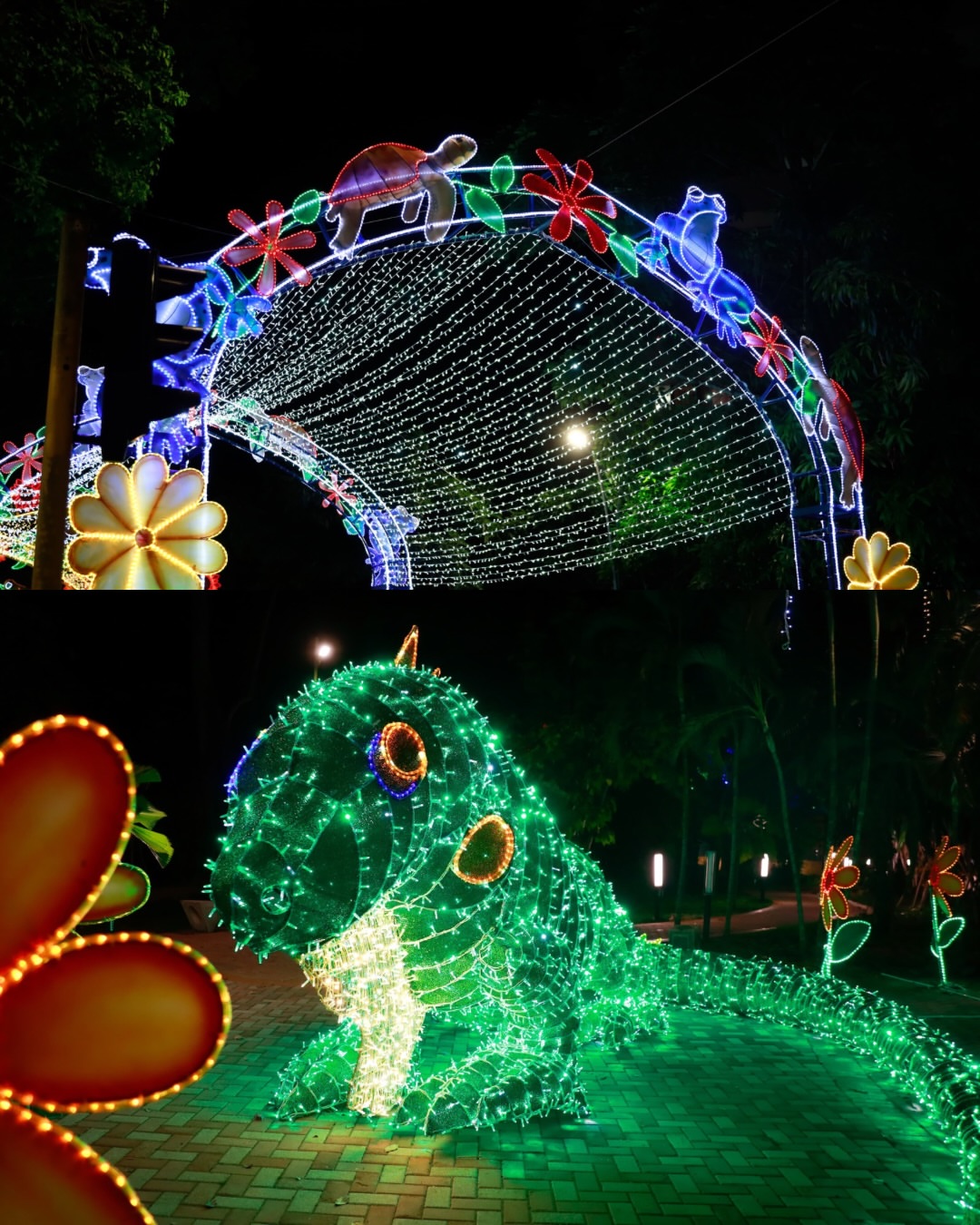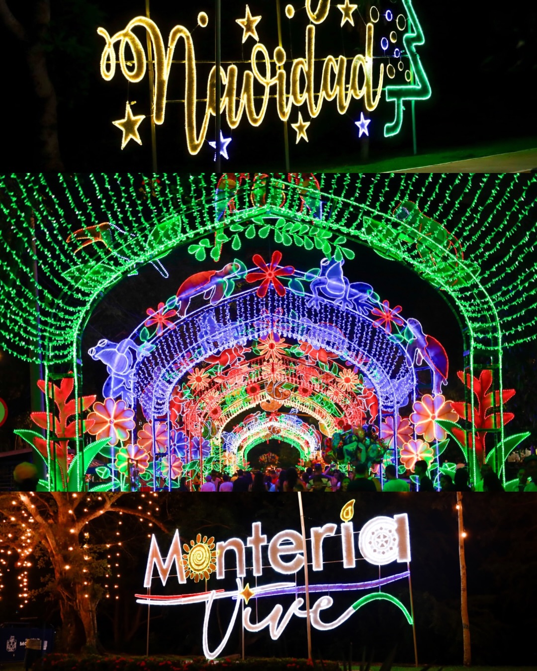 La capital cordobesa luce este año su ornamentación decembrina más original, destacando su riqueza natural mediante representaciones luminosas de especies autóctonas como iguanas, garzas, osos perezosos, bonches, cartuchos y ardillas.