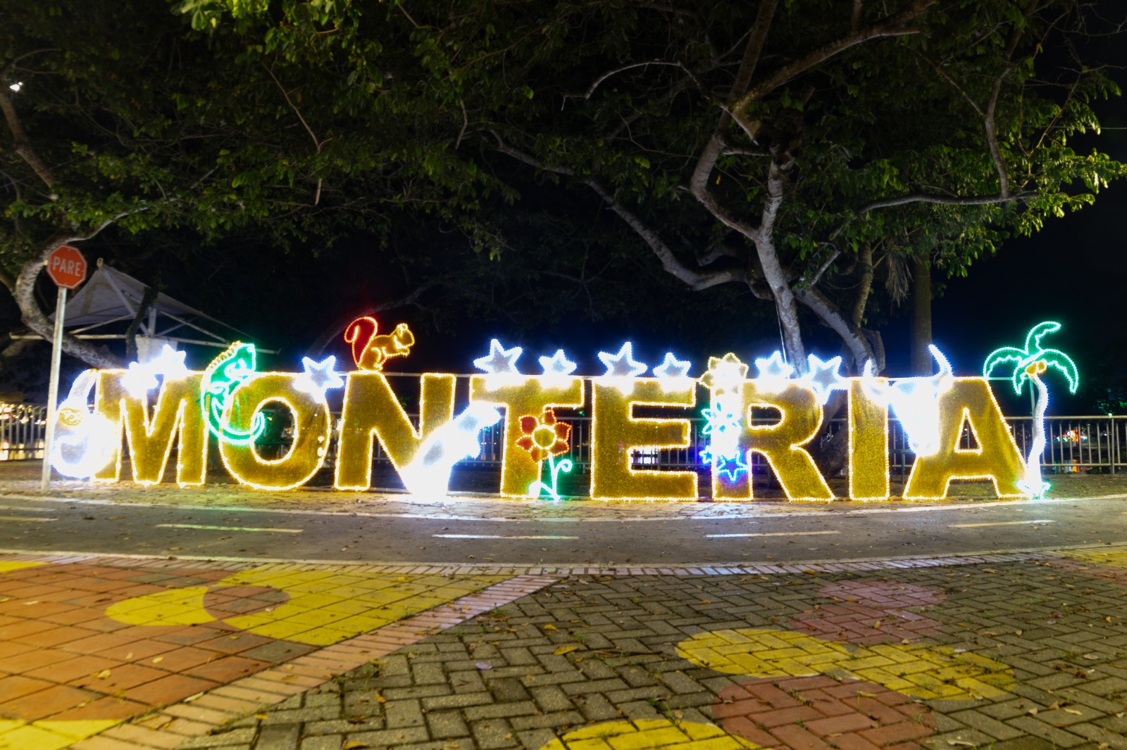 La decoración luminosa fusiona elementos tradicionales de la temporada con la biodiversidad característica del territorio cordobés. Iguanas, osos perezosos, ardillas, garzas, bonches y cartuchos forman parte del repertorio de figuras que adornan diversos puntos de la capital cordobesa.